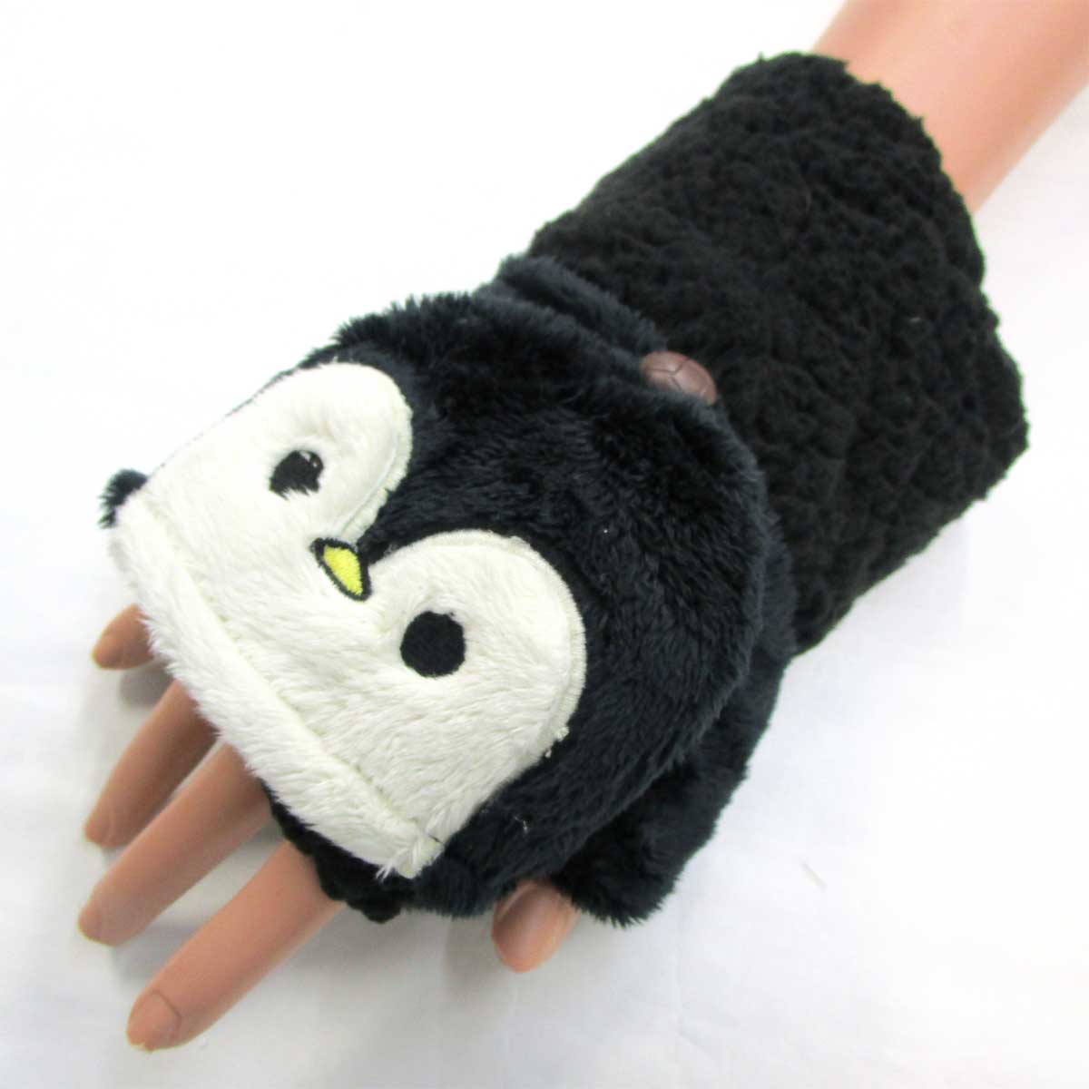 レディース ニット手袋 指無し キャップ付き アニマル ペンギン カフスボア [戻る]