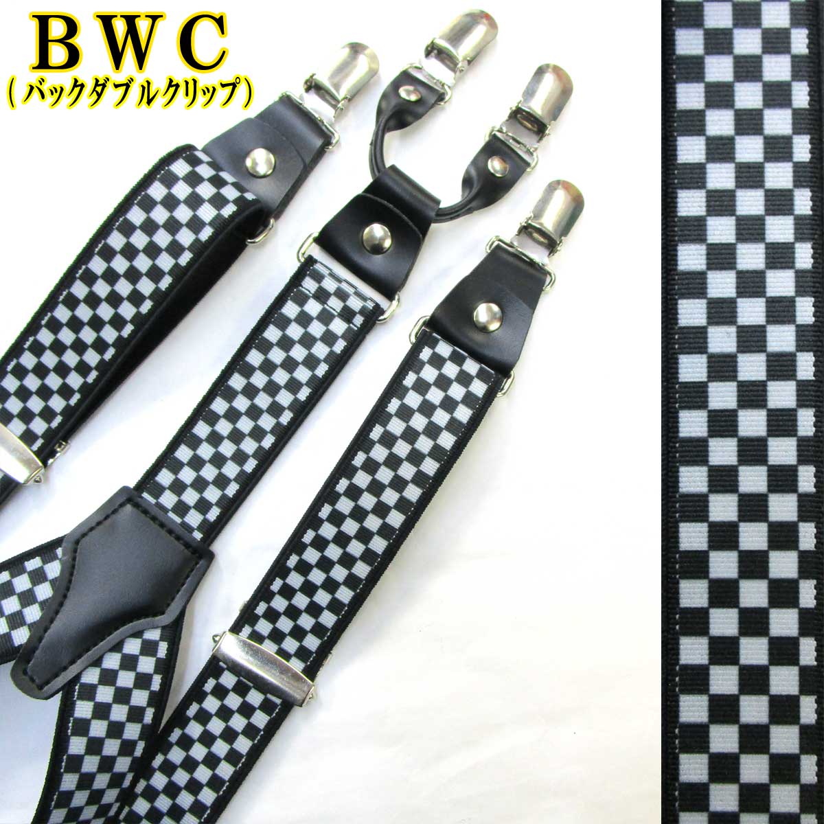 【受注生産品】 返品不可 日本製 30mm Y型 BWC サスペンダー ハンドプリント 市松チェック [4118-60007-a]